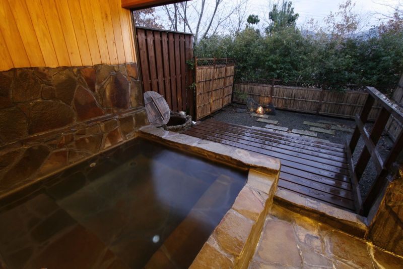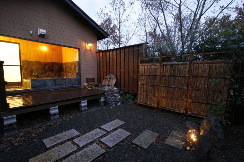 阿蘇のさわやかな空気を胸一杯満喫しながら、のんびり半露天岩風呂を貸し切りでご利用できます。