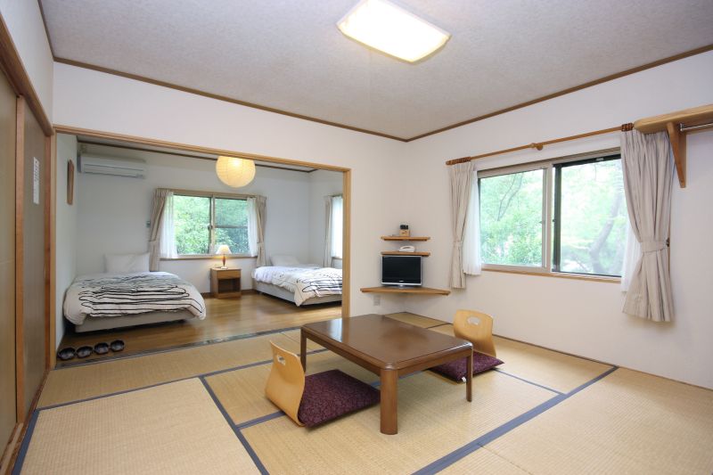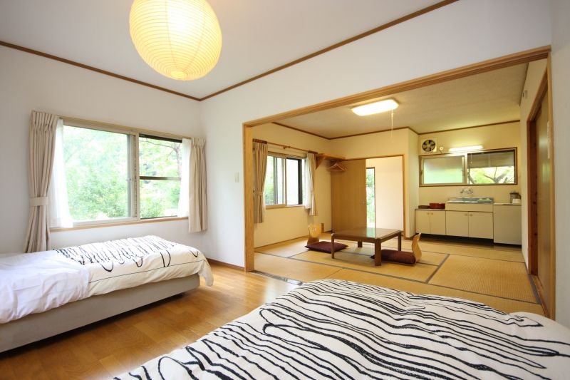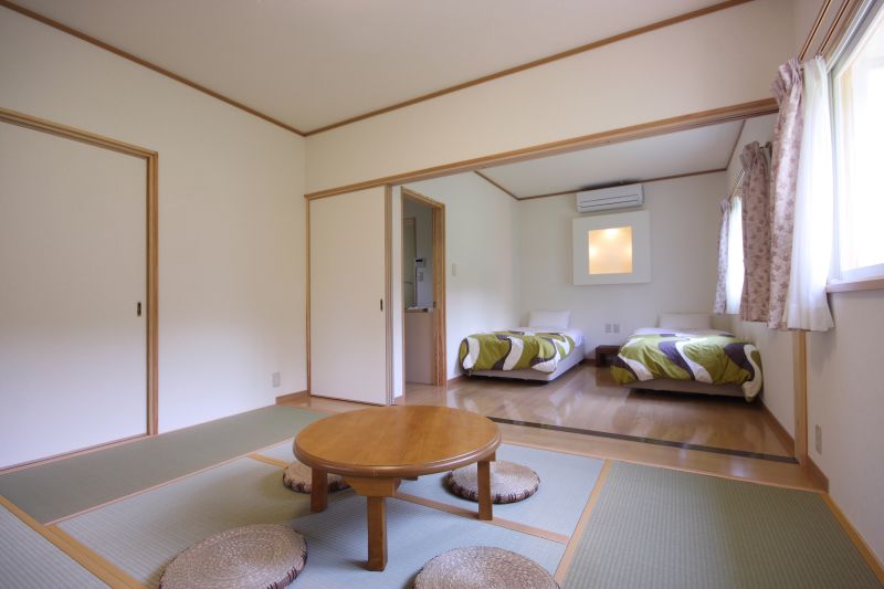 ![]() 離れ 和室8畳+洋室(トイレ付き) 和室8畳と寝室(洋室)のお部屋が1棟になります。専用のお風呂がついておりませんでの、館内にある貸切風呂(3室)をご利用ください。押し入れにはお布団もご用意しておりますので、5名様のお客様でも安心してお過ごしいただけます。 |