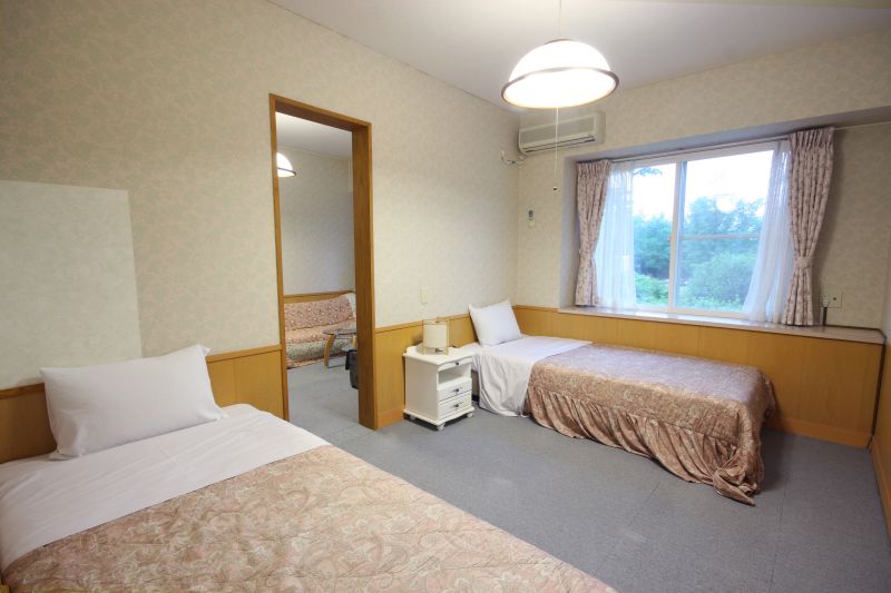 ![]() 離れ 和室6畳+洋室 (バス・トイレ付き) 和室6畳と寝室(洋室)、専用のお風呂が完備したお部屋が2棟になります。客室内のお風呂は温泉ではありませんが、24時間入浴する事ができます。押し入れにはお布団もご用意しておりますので、4名様のお客様でも安心してお過ごしいただけます。 |